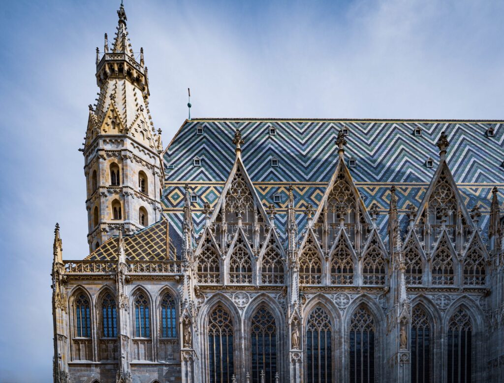 The Palais Equitable, seen here on the left, became my favourite architectural discovery in Vienna to photograph. Completed in 1891 at Stock-im-Eisen-Platz to serve as the lavish local headquarters for The Equitable Life Assurance Society, its elaborate facade and distinctive verdigris copper roof are stunning examples of the city’s late 19th-century ambition. While this particular photograph captures its impressive upper levels, the building is also famously home to the medieval ‘Stock im Eisen’ (a nail-studded tree trunk) nestled at its street-level corner, a unique artifact deeply entwined with Vienna’s ancient folklore and the square’s name.